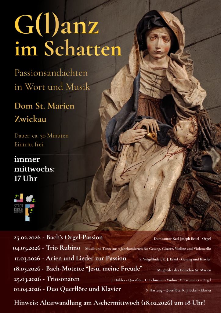 Am 24. Februar 2026 wurden unter großer Anteilnahme die Statuen Petrus, Paulus und Jesaja vom Dom St. Marien durch die Steinmetzwerkstatt Scheunert aus Stollberg/Erzgebirge entfernt und an die beauftragten Steinbildhauermeister Hartmut Wischel (Großenhain) und Andreas Muth (Zwickau) zur Restaurierung übergeben. Möglich wurde dies erst durch den unermüdlichen Einsatz des Fördervereins zur Erhaltung des Domes St. Marien zu Zwickau e.V., vertreten u.a. durch den Dombaumeister i.R. Dr. Michael Kühn, und die Förderung durch die Ostdeutsche Sparkassenstiftung und die Sparkasse Zwickau. Der MDR war live mit seiner Sendung „MDR ab zwei“ dabei und brachte ebenso einen Beitrag im „Sachsenspiegel“ (beides zu sehen in der Mediathek). Während der Abnahme der Figuren verlor Paulus seinen Kopf an einer alten Sollbruchstelle. Petrus hat diesen schon bei einem Bombenangriff im zweiten Weltkrieg verloren und einen Arm dazu. Auch Jesaja ist nur noch einarmig. Diese drei Statuen sind die letzten, die noch saniert werden müssen. Die Stadtkirchgemeinde Zwickau, der Förderverein des Domes, die Stadt Zwickau und alle interessierten Menschen freuen sich auf die Rückkehr von Petrus, Paulus und Jesaja im Jahr 2027.