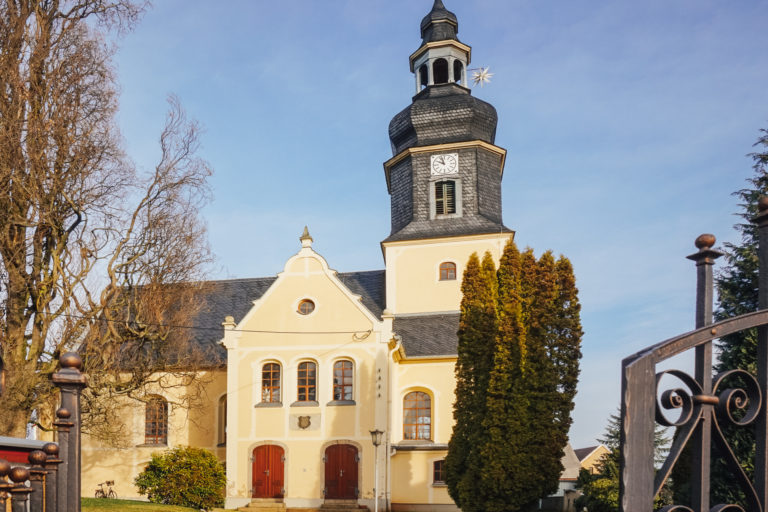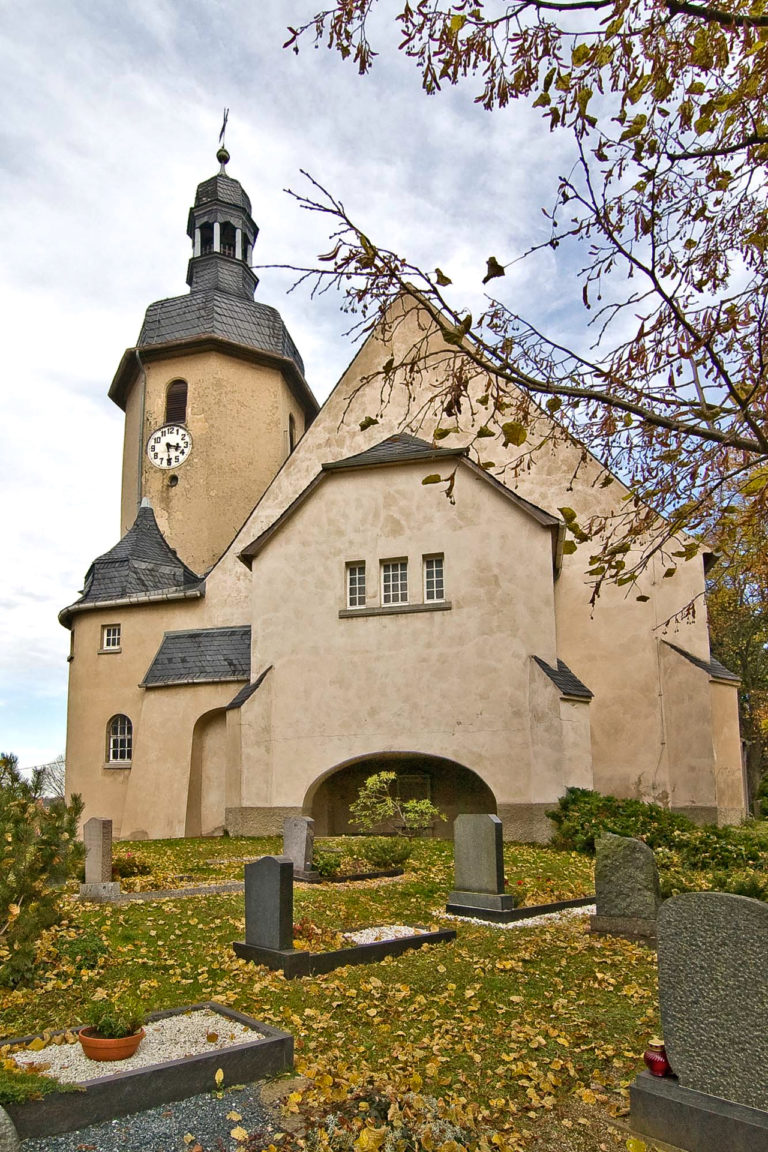 Kirchengebäude Marienkirche Werdau Bild 1: Außenansicht Marienkirche mit Pfarrhaus und Gemeindezentrum im Vordergrund Bild 2: Blick ins Kirchenschiff Kirche wurde 1756 durch einen […] weiterlesen Jakobikirche Königswalde Sie ist mit über 800 Jahren eine der ältesten in ihrer ursprünglichen Form erhaltene Dorfkirche unserer Region. Im Zuge der […] weiterlesen Kapelle Leubnitz Die Errichtung erfolgte als Friedhofskapelle im Jahr 1888 Nach dem 2. Weltkrieg wurde die Kapelle zum freundlichen Gottesdienstraum für den […] weiterlesen Kreuzkirche zu Wildenau Die Wildenauer Kirche wurde nach 15 monatiger Bauzeit am 12.09.1898 geweiht. Die Kirche steht in der Dorfmitte auf einer Anhöhe, […] weiterlesen Kirche Wildenfels Die evangelische Stadtkirche in Wildenfels entstand als neuromanischer Bau in den Jahren 1866 – 1869. Vor dieser Kirche standen bereits […] weiterlesen Culitzsch – Laurentius-Kirche Am 29. Mai 1770 erfolgte die Grundsteinlegung für die Laurentiuskirche. Sie wurde durch den Schneeberger Baumeister August Siegert errichtet und […] weiterlesen St.-Michaeliskirche Niedercrinitz In den meisten Abhandlungen über Niedercrinitz liest man, dass der Ort wahrscheinlich um 1300 gegründet wurde. Fachleute haben herausgefunden, dass […] weiterlesen Wilkau-Haßlau Michaeliskirche Neoromanisch anmutende Pseudobasilika. Rundbogenportal mit Christusfigur (Salvator mundi) Im Inneren Kruzifix von Alfred Schweiger Aus Wikipedia weiterlesen Wilkau-Haßlau – Lutherkirche Die Lutherkirche in Haßlau wurde 1891 eingeweiht. Sie hat neoromanische Stilelemente und als Besonderheit eine Kuppel über der Vierung. Im […] weiterlesen Kirche Zschocken 1. Foto Ev.-Lutherische Kirche Zschocken mit dem 400 Jahre alten Wacht- und Wehrturm. Nebenan die alte Kirchschule aus dem Jahre […] weiterlesen Zwickau-Auerbach Turm: Die Kirche von Zwickau-Auerbach ist bekannt durch ihren roten Turm, der aus roten Ziegeln im 14.Jh. erbaut worden ist.Dendrochronologische […] weiterlesen Christophoruskirche Unserer Gemeindezentrum als moderner und besonderer Ort in Eckersbach – die beiden parabelförmigen Bauteile (Kirchenraum und Gemeinderäume) symbolisieren zum einen […] weiterlesen Kirche Bärenwalde Ein paar Infos zu unserer Kirche sind: Baujahr 1733, Grundfläche 650 m², Turmhöhe 52 Meter. Der Altar unserer Kirche stammt von […] weiterlesen Kirche Beiersdorf Besonderheiten: Alte Patronatskirche der Familie von Schönfels; Gotischer Chorraum mit Kreuzgewölbe (Foto Innenraum Nr. 6992) und Inschrift „1416“; ursprünglich mehrere Grabstellen […] weiterlesen Lutherkirche Zwickau Die Lutherkirchgemeinde Zwickau ist eine Modellgemeinde für Gemeindeaufbau der sächsischen Landeskirche. Die lebendige Gemeindearbeit wird von vielen in Mitarbeiterteams organisierten […] weiterlesen Lukaskirche Planitz Besonderheit Lukaskirche Planitz: 1x im Jahr findet eine große „GOTT IST GUT“ Konferenz statt. Diese Konferenz läuft 4 Tage lang. […] weiterlesen Kirche Blankenhain Unsere Blankenhainer Kirche, ursprünglich aus dem 13. Jahrhundert, besitzt neben vielen anderen Sehenswerten, über dem Altar ein sehr prägnantes Mosaik-Glas-Fenster […] weiterlesen Schloßkirche Planitz Die Schloßkirche ist die erste neu erbaute evangelische Kirche im gesamten Zwickauer Umkreis. Sie besitzt aus Renaissance- und Barockzeit eine […] weiterlesen Chursdorf Christuskirche Kirchenschiff wohl im 14. Jahrhundert entstanden. Anbau eines Treppenhauses und Grundsanierung 1980. Im Dachreiter befinden sich zwei Bronzeglocken, Orgel der […] weiterlesen Rottmannsdorfer Kirche Die Rottmannsdorfer Kirche ist eine der ältesten Kirchen im Umkreis von Zwickau. Der Kern der Kirche besteht aus einem romanischen […] weiterlesen Kirche Cainsdorf Die Kirche Cainsdorf befindet sich oberhalb des Muldentales auf der sogenannten „Cainsdorfer Nase“. Sie ist eine neugotische Saalkirche und wurde von dem Architekten […] weiterlesen Dom St. Marien in Zwickau Der Dom St. Marien in Zwickau ist eine der bedeutendsten Hallenkirchen der obersächsischen Spätgotik. Die Anfänge der Stadtkirche St.Marien reichen […] weiterlesen Crimmitschau Lutherkirche Das Kirchengebäude ist ein relativ junges Bauwerk von 1937. und wurde auf der Grundlage des Sächsischen Denkmalschutzgesetzes von der Sächsischen […] weiterlesen St. Katharinenkirche Zwickau Standort: Katharinenstraße 34, 08056 Zwickau Die spätgotische Hallenkirche wurde erstmals 1219 urkundlich erwähnt. Die Altarbilder wurden von Lucas Cranach d.Ä. […] weiterlesen Crimmitschau St. Johannis-Kirche Der erste Spatenstich erfolgt am 5. Oktober 1908, die feierliche Grundsteinlegung findet am 22. Oktober desselben Jahres statt und bereits […] weiterlesen Matthäuskirche in Zwickau Standort: Muldestraße 19, 08056 Zwickau Die erste „Bockwaer Kirche“ wurde 1511 gebaut. Weil die Kirche zu klein und zu baufällig […] weiterlesen Zwickau Pauluskirche Am 19. August 1899 feierte die Gemeinde den letzten Gottesdienst in ihrer alten Dorfkirche, die im Jahre 1722 eingeweiht worden […] weiterlesen Crimmitschau – St. Laurentius-Kirche Die evangelische Stadtkirche St. Laurentius ist eine spätgotische Hallenkirche in Crimmitschau im Landkreis Zwickau in Sachsen. Sie gehört zum Verband […] weiterlesen Versöhnungskirche Zwickau Bei den Innenaufnahmen ist einmal die Altarseite mit Versöhnungsbogen und Lichtkreuz zu sehen und auf der anderen Aufnahme die Westseite […] weiterlesen Crimmitschau – St. Katharinen – Rudelswalde Die neue Dorfkirche St. Katharinen im Zentrum des Orts entstand 1811/12 und erhielt 1861 eine Opitzorgel mit acht klingenden Registern. […] weiterlesen Kirche Crossen 800 Jahre Kirche „Maria zur Weiden“ Crossen 1219 wird ersmals in „Crozne“ eine Kapelle erwähnt. Die Neue Kirche wurde auf […] weiterlesen Kreuzkirche Ebersbrunn Die Kirche in ihrer jetzigen Gestalt wurde 1820 unter P. Rudel erbaut. Erläuterungen zu den Fotos au