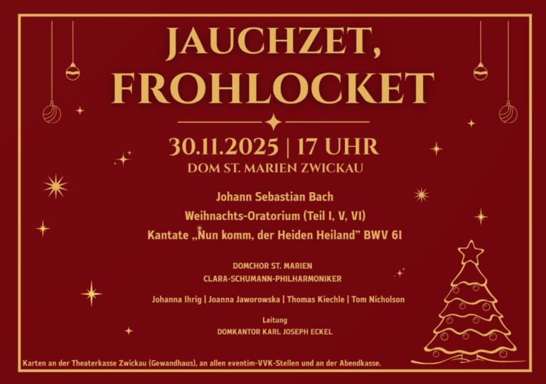 Jauchzet, Frohlocket – Weihnachtsoratorium am 30.11.2025, 17:00 Uhr im Dom St. Marien Zwickau