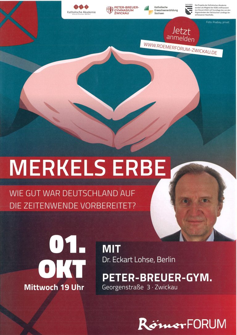 Das RömerForum lädt ein zu einem Abend im Peter-Breuer-Gymnasium, Georgenstr. 3 in Zwickau-Innenstadt, am 1. Oktober 2025, 19:00 Uhr. Es spricht: Dr. Eckart Lohse aus Berlin.